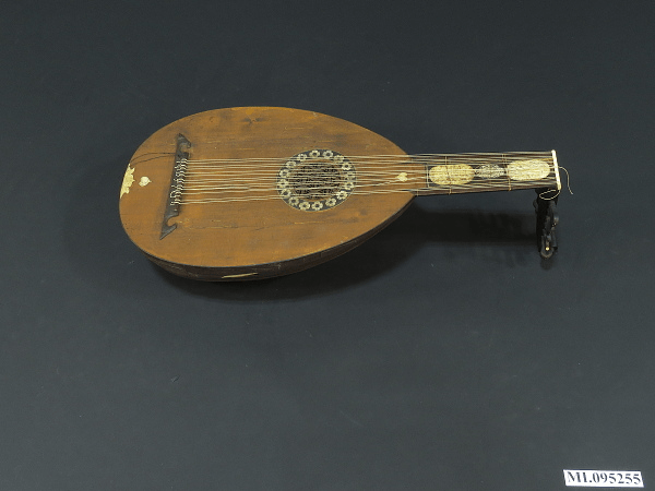 A lute is a pear-shaped stringed instrument with a deep round back.