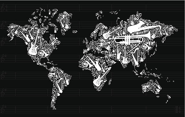 World Map with Musical instruments, Illustration 149147996 © cienpies | iStock by Getty Images.