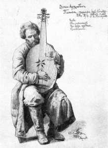 Portrait of Kobzar Stepan Pasiuha, by Opanas Slastion, {PD-Art|PD-old-80}. Vernadsky National Library of Ukraine.