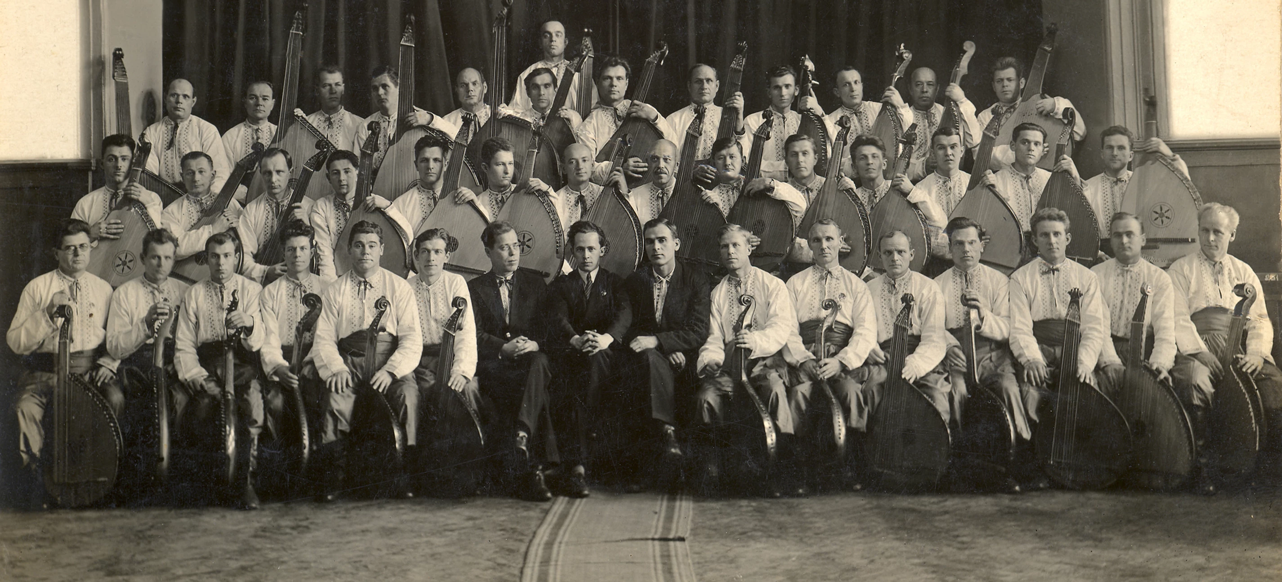 The State Exemplary ("Зразкова") Bandurist Kapella, unknown photographer. Ukrainian Bandurist Chorus of North America Archives.