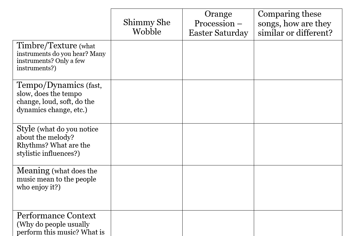 Listen again and pay attention to lyrics, which follow call-and-response form.