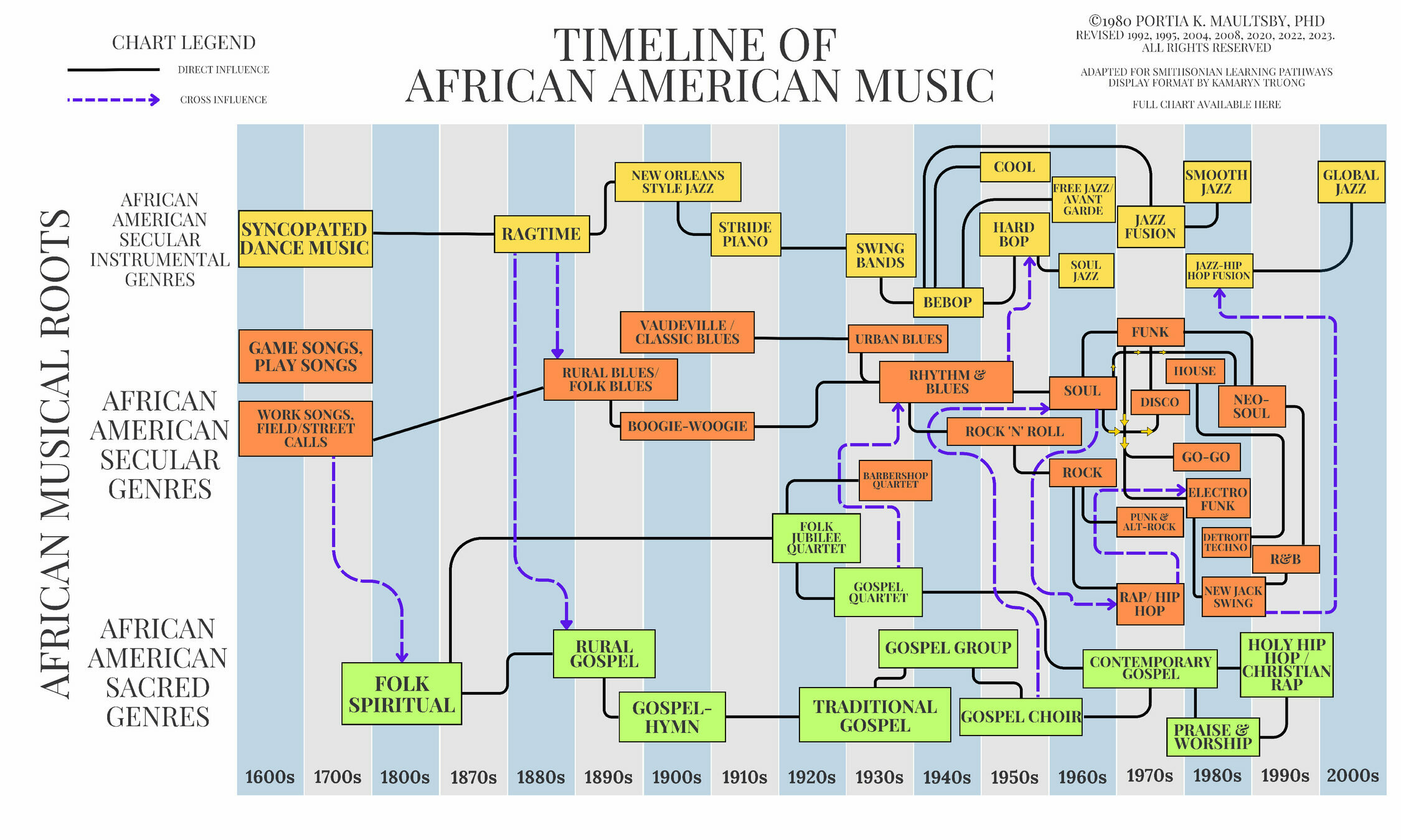 Over time, spirituals influenced the development of other musical genres created by Black Americans, such as gospel and the blues.