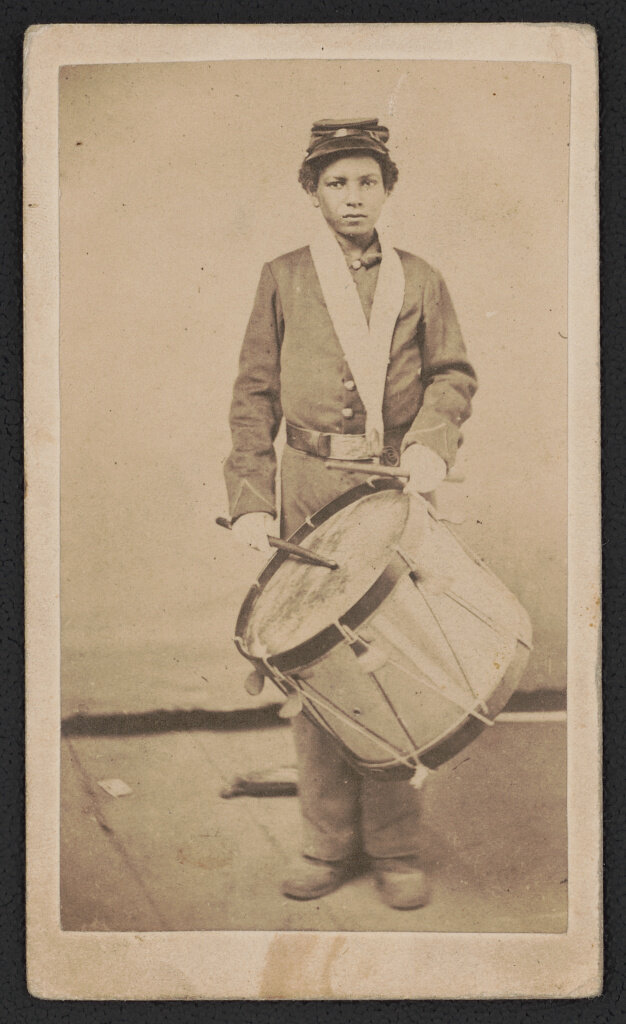 Taylor, Young Drummer Boy for 78th Colored Troops (USCT) Infantry, in Uniform with Drum, unknown artist. Library of Congress.