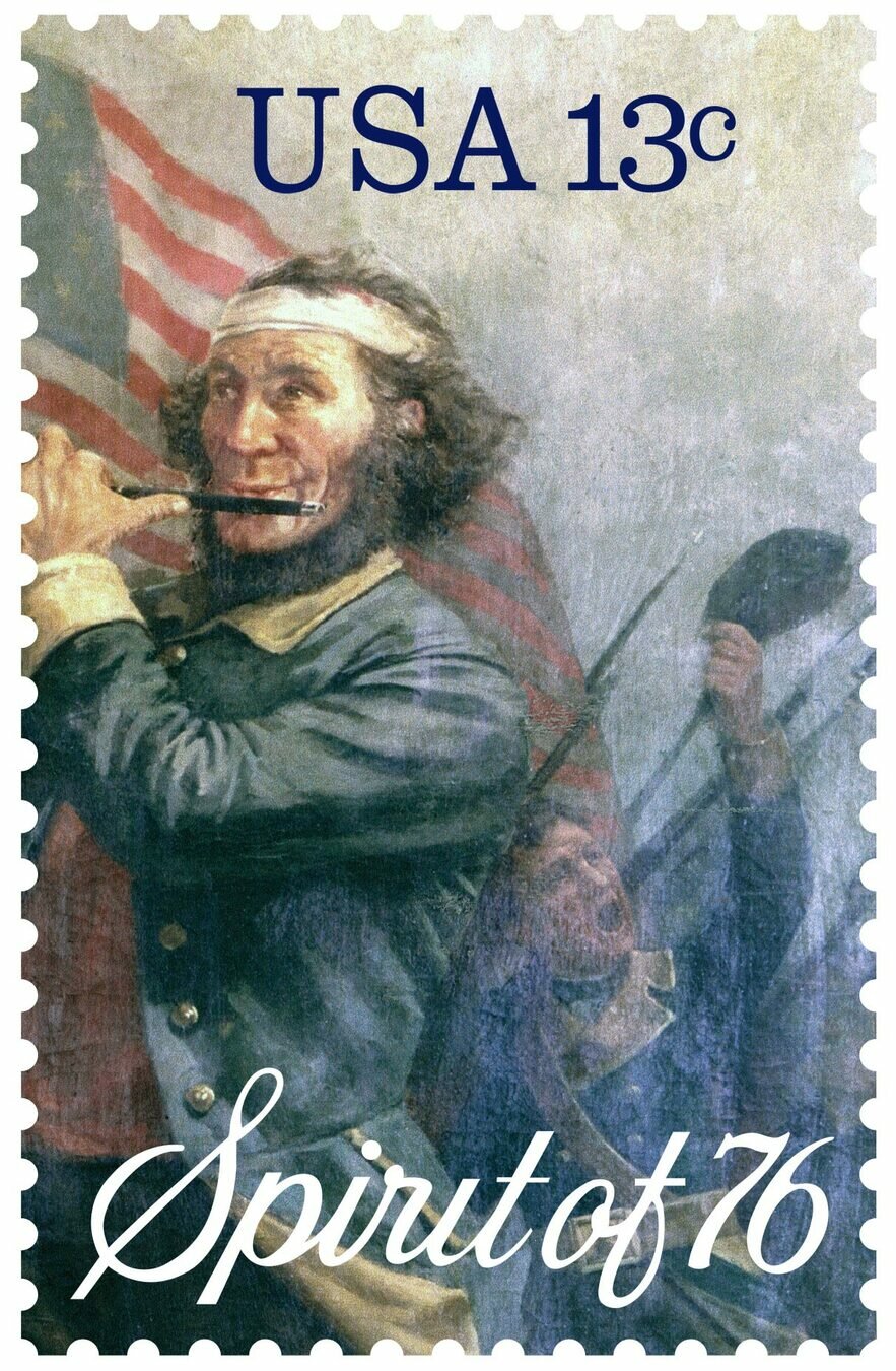 The use of a fifer on this commemorative stamp celebrating the country's 200th birthday shows the vital role this instrument played for the American military during the Revolutionary War.