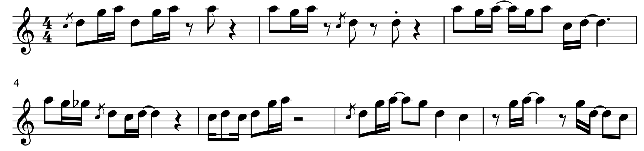 Consider adding the grace notes and the accidental in measure 4 (especially if students are playing a wind instrument).