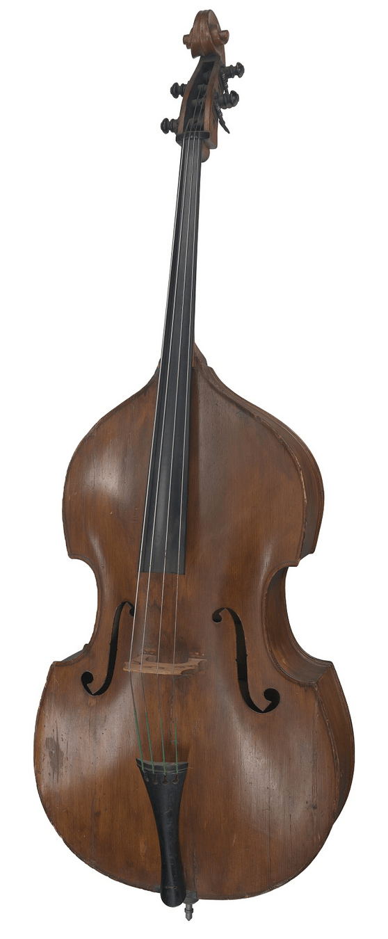 Right: Upright Acoustic Double Bass, unknown maker. National Museum of African American History and Culture.