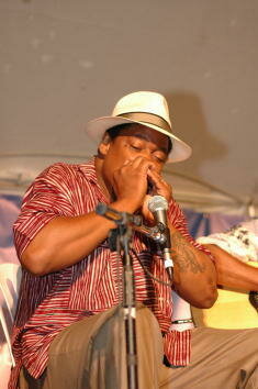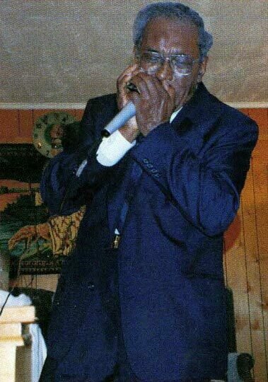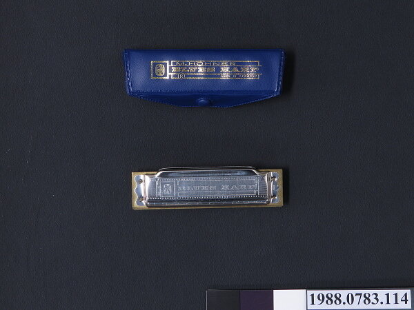 Left: Blues Harp Harmonica, by M. Hohner. National Museum of American History. Right: Elder Roma Wilson, by Chris Strachwitz. Arhoolie Records.