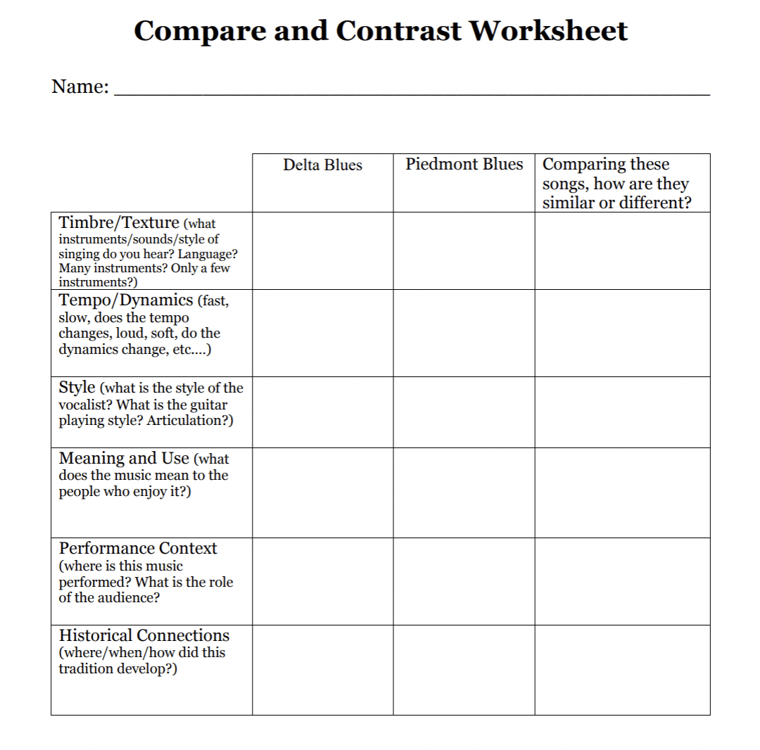 If time allows, discuss musical and stylistic differences between the Delta blues example and the country blues example you heard earlier.