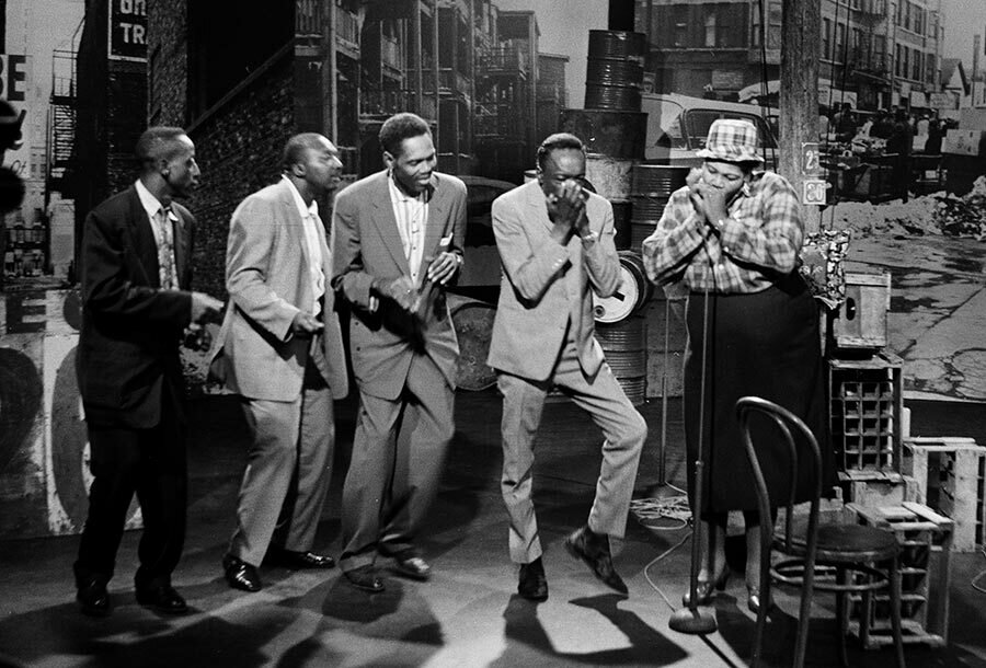 Big Mama Thornton playing harmonica with John Lee Hooker, photograph by Chris Strachwitz. The Arhoolie Foundation.