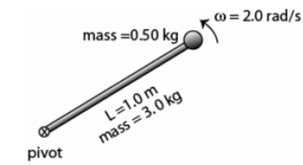 &\text{The rod and the particle are rotating around the other pivoted end of the rod with } 2.0~\text{rad/s.} \\
