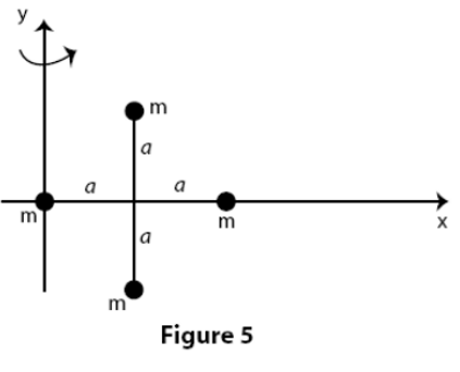 &\text{If } m = 2.0~\text{kg} \text{ and } a = 1.0~\text{m}, \text{ find the rotational inertia of this system about the y-axis.} \\