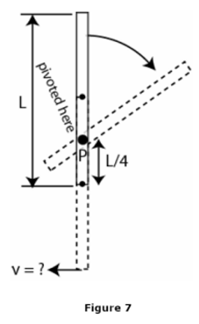 &L/4 \text{ from one end}\text{(see Fig.~7). The rotational inertia of the rod about P is } 1.17~\mathrm{kg \, m^2}.\\