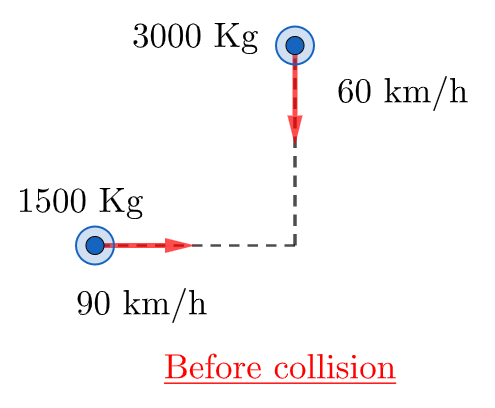 &\text{south. The two cars stick together after the collision (see Fig.~2).}\\