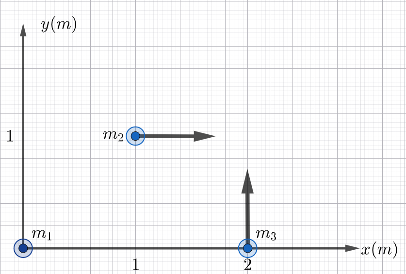 &\text{of three masses being located at the origin } (0,\, 0)? \nonumber \\[6pt]