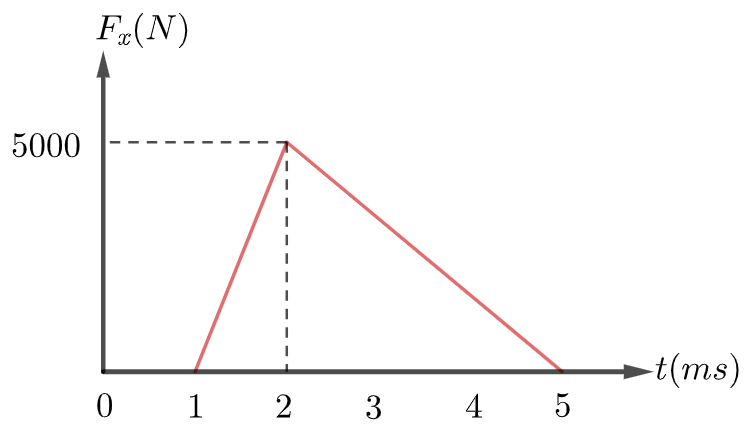 &\text{An impulsive force } F_x \text{ as a function of time (in ms) is shown in Fig.~3, applied to an object }\\