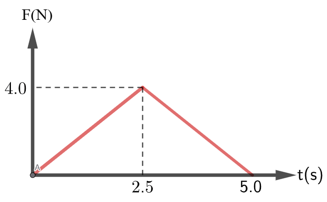 &J = \tfrac{1}{2} \times (5.0~\text{s}) \times (4.0~\text{N}) = 10~\text{N.s}. \\[6pt]