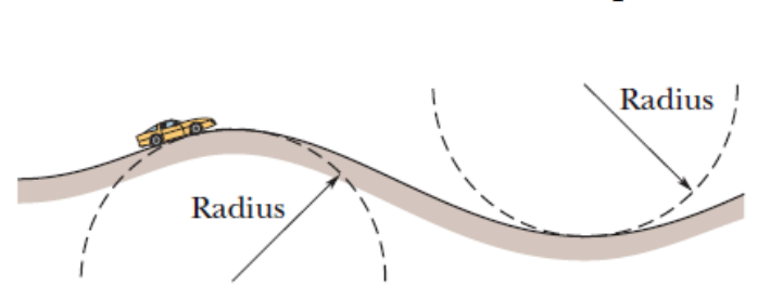 \text{In Figure 9, a car is driven at constant speed over a circular hill and then into a circular valley}