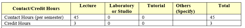 \text{- Lecture: 2 Hour(s) per week x 14 weeks}