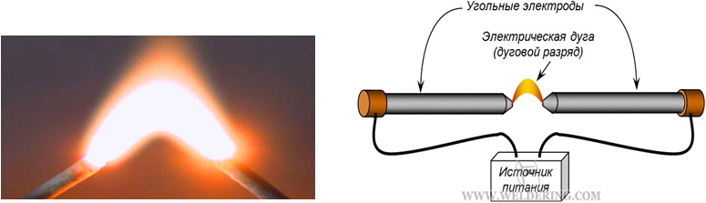 представляет собой электрический пробой газа, которой в дальнейшем становится постоянным плазменным разрядом — дугой, образуется электрическая дуга.