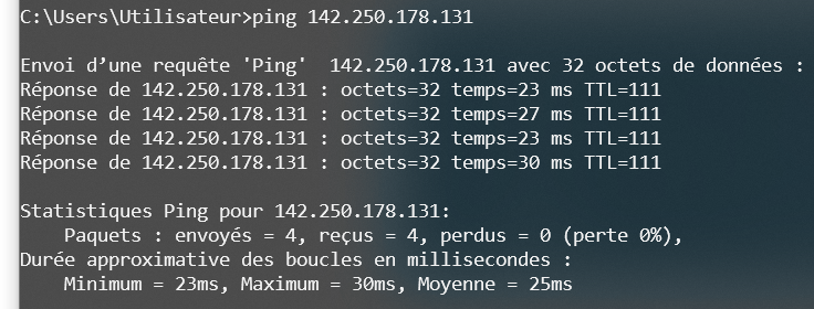 La commande ping : obtenir le temps de réponse d'un serveur (en millisecondes)
