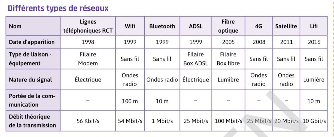 1 octet = 8 bits : chaque bit prend la valeur 0 ou 1 donc avec un octet on a \(2^8 = 256\) valeurs possibles.