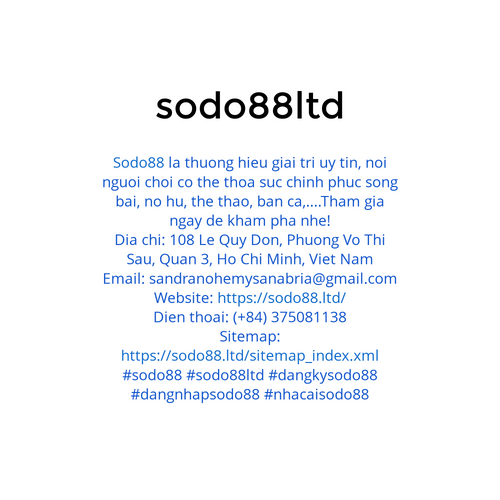 "Sodo88 la thuong hieu giai tri uy tin, noi nguoi choi co the thoa suc chinh phuc song bai, no hu, the thao, ban ca,....Tham gia ngay de kham pha nhe! Dia chi: 108 Le Quy Don, Phuong Vo Thi Sau, Quan 3, Ho Chi Minh, Viet Nam Email: sandranohemysanabria@gmail.com Website: https://sodo88.ltd/ Dien thoai: (+84) 375081138 Sitemap: https://sodo88.ltd/sitemap_index.xml #sodo88 #sodo88ltd #dangkysodo88 #dangnhapsodo88 #nhacaisodo88"
