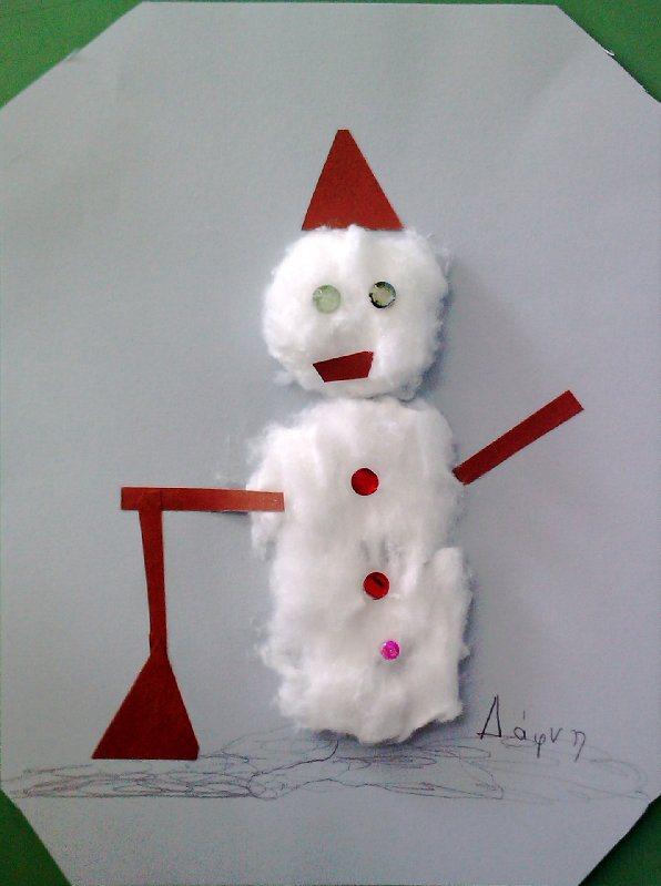 …. και αφού μερικές κόλλες δεν κατάλαβαν πού έπρεπε να κολλήσουν και κόλλησαν στα χέρια μας, μερικά κομμάτια βαμβακιού έκαναν άλματα από τα θρανία και έπεφταν στο πάτωμα, είπαν και μερικές χάντρες και κουμπάκια να μας ταλαιπωρήσουν…. τελικά επιβάλαμε την τάξη, στην τάξη, και τα καταφέραμε.. Αποτέλεσμα…