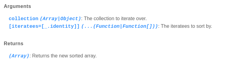 // => objects for [['barney', 34], ['barney', 36], ['fred', 40], ['fred', 48]]_.sortBy(collection, [iteratees=[_.identity]])
