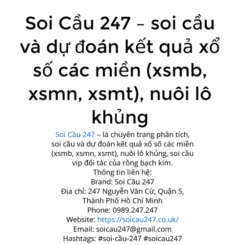 Soi Cầu 247 – là chuyên trang phân tích, soi cầu và dự đoán kết quả xổ số các miền (xsmb, xsmn, xsmt), nuôi lô khủng, soi cầu vip đối tác của rồng bạch kim. Website: https://soicau247.co.uk/