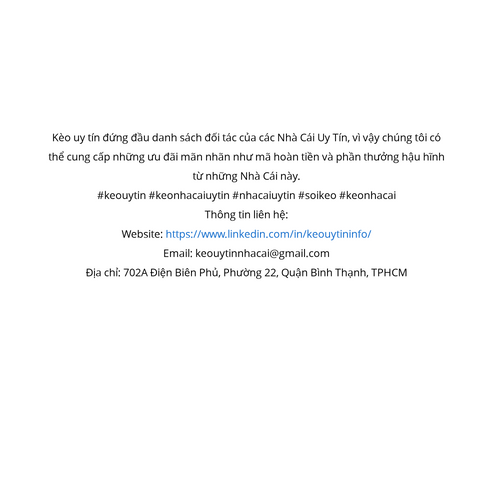 Kèo uy tín đứng đầu danh sách đối tác của các Nhà Cái Uy Tín, vì vậy chúng tôi có thể cung cấp những ưu đãi mãn nhãn như mã hoàn tiền và phần thưởng hậu hĩnh từ những Nhà Cái này. https://www.linkedin.com/in/keouytininfo/