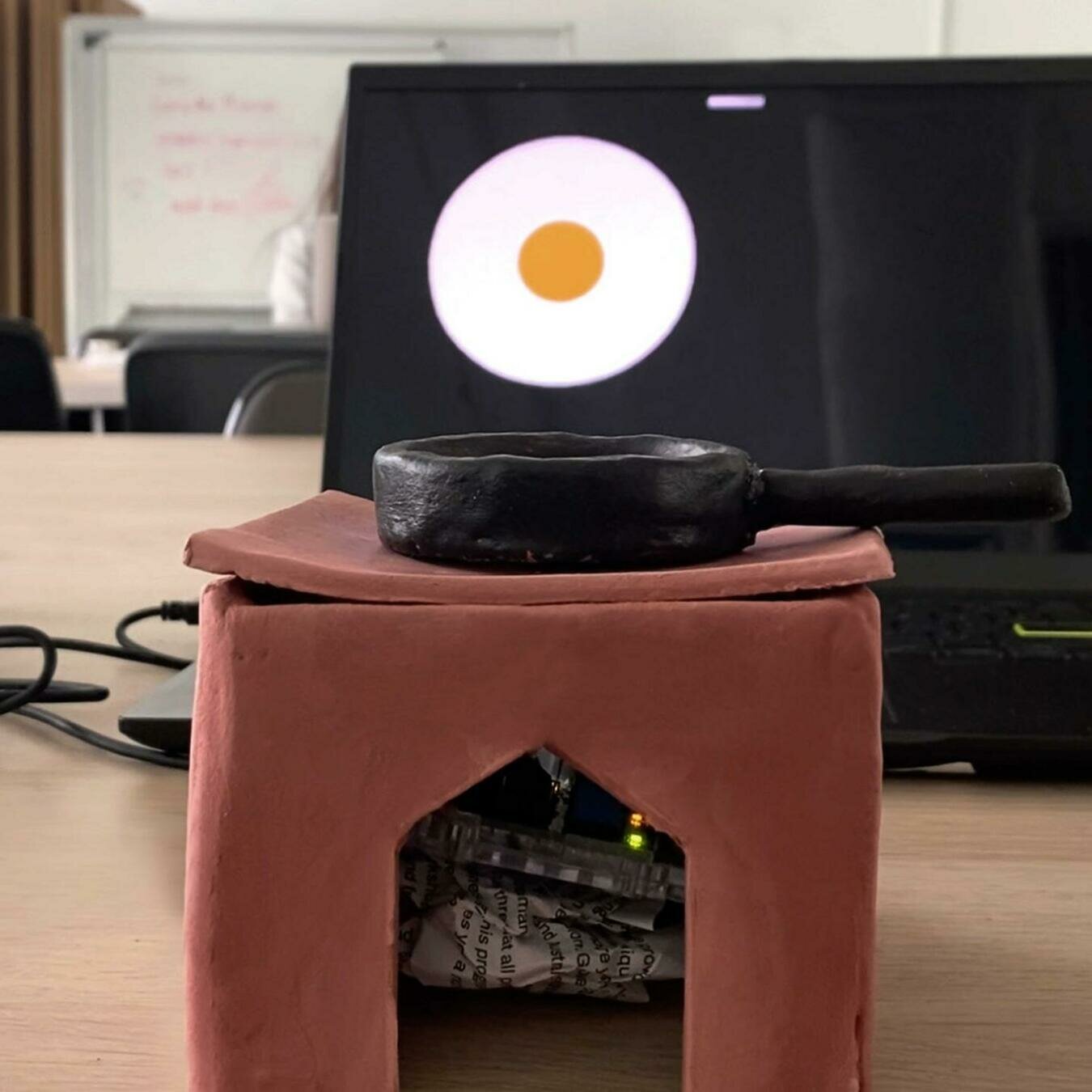 Next, we connect a basic touch sensor to a physical object and our laptops. The challenge is to create expressive visual responses to touch events that make objects sensable.