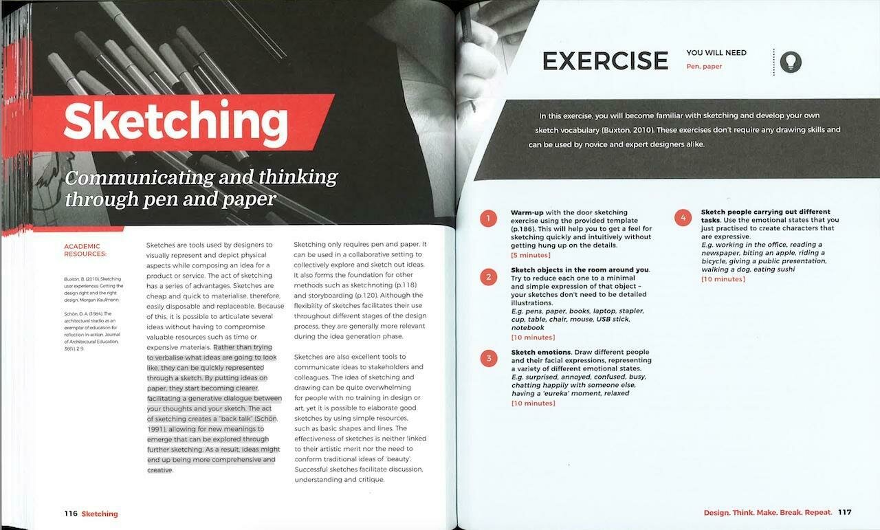 Much of the learning is inductive—build and test first, gather evidence and think critically, reflect on your explorations, see what a process, an artefact, affords you as a design researcher, and decide on the next series of steps in an incremental process. Our approach here will oscillate between design practice and design research–writing and making.