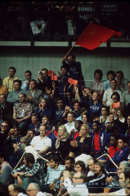 Sovyetler Birliği Olimpiyat ekibi basketbol takımını destekliyor