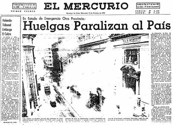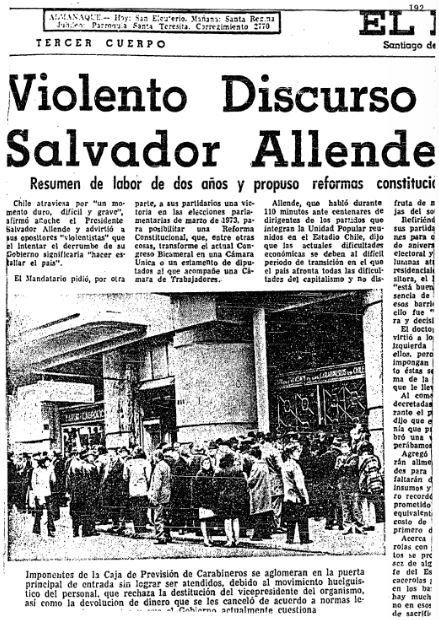 Hükümet karşıtı protestolar son hız sürdü. Allende Hükümeti tamamen kilitlenmişti ve yaratılan ekonomik kriz durumu iyiden iyiye kötüleştiriyordu. Yandaş medya ve ABD, uluslararası müdahale için çağrılar yapmaya başladı.