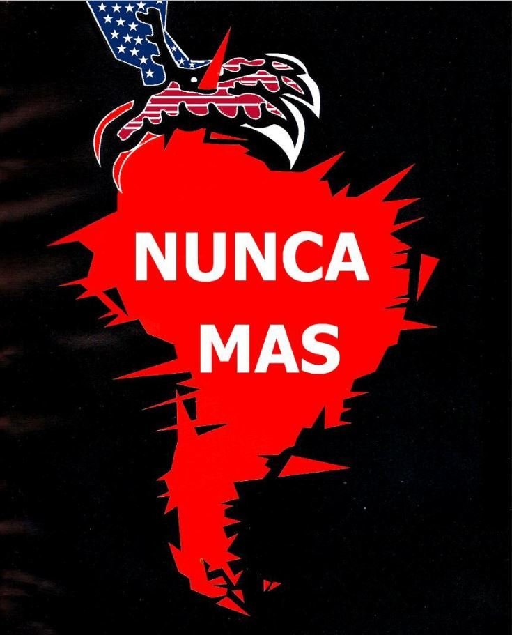 Demokratik Alman Cumhuriyeti'nden Cesar Olhagaray imzasını taşıyan bu afişte ABD emperyalizmi orduları yanında ITT, Coca Cola gibi şirketler, kola gibi "kültürel" ürünler aracılığıyla da Şili'ye saldırıyor.