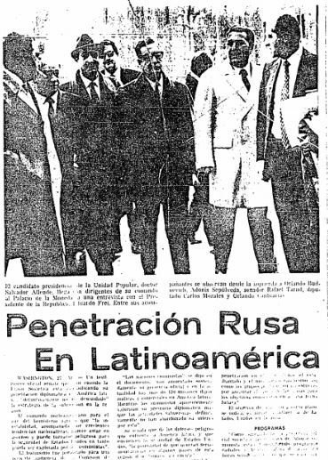 Vatan ve Özgürlük Cephesi'nin aynı adlı yayınının ilk sayısı kapağı : "Kesin: Şili Marksist Olmayacak!"