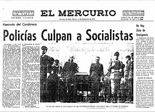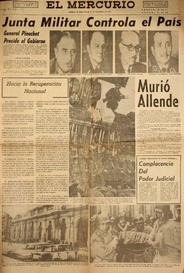 El Mercurio amacına ulaşmanın mutluluğuyla darbe sonrası şu manşeti atar: "Askeri cunta ülkede yönetime el koydu"