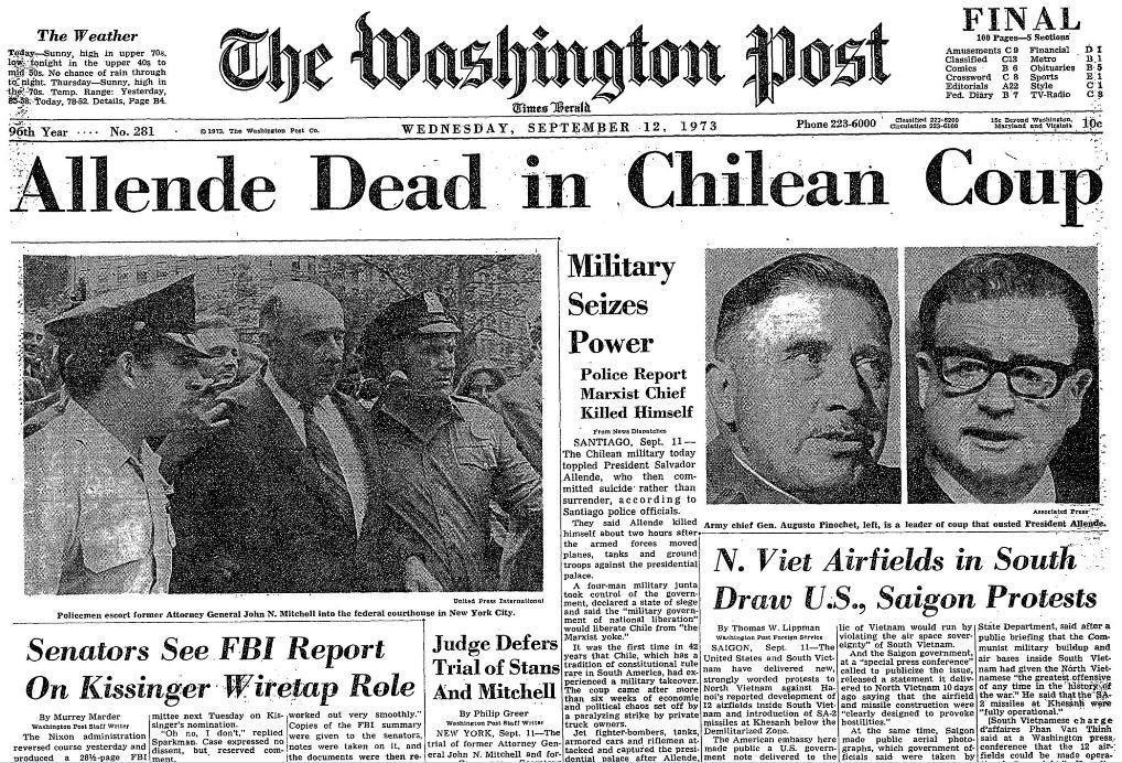 Darbenin ardından Washington Post: "Şili'deki darbede Allende öldü"