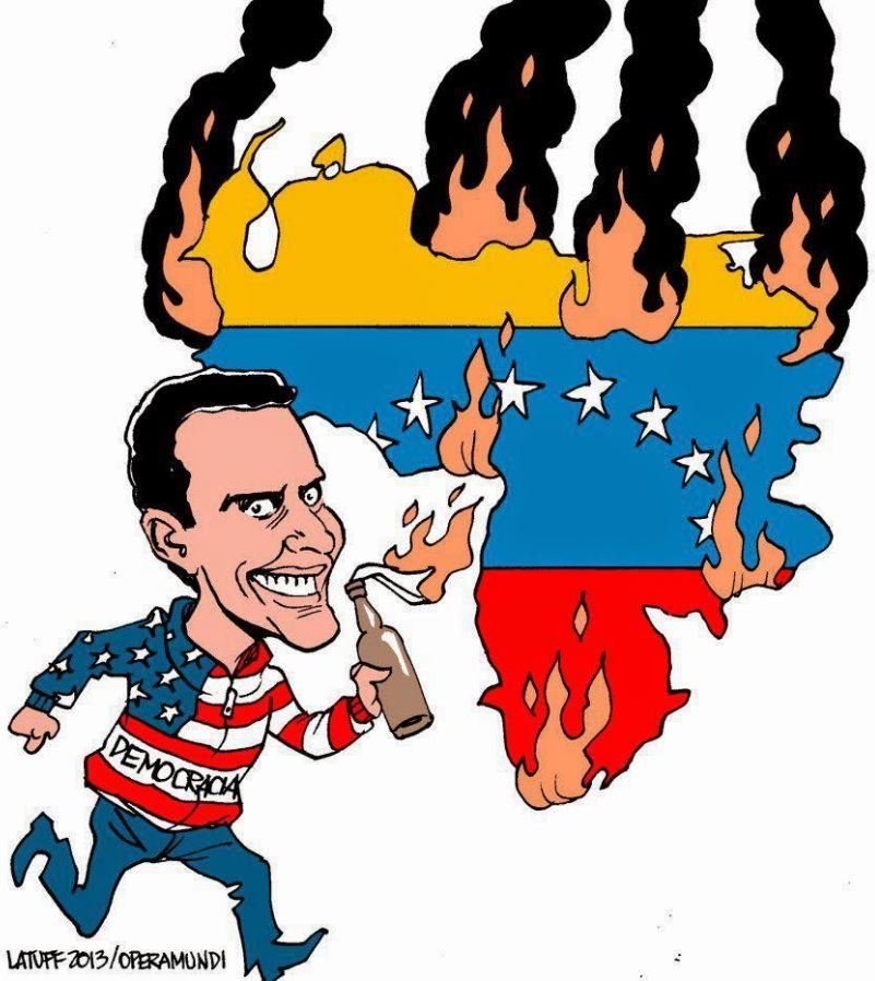 Karikatür sanatçısı Latuff, bugün hala muhalefetin vitrin adayı olan Henrique Capriles'i 2013 yılında böyle resmetmişti.