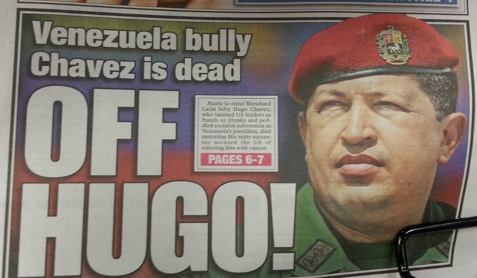 New York Post Chavez'in ardından küfürlü bir manşet yapmış, Chavez'i "Venezuela Kabadayısı" olarak tarif etmişti.