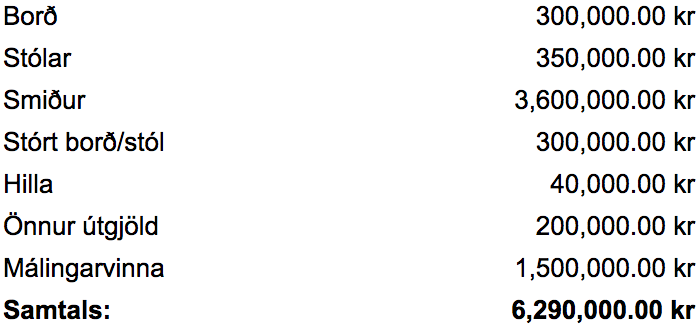 Heildarkostnaður við stofnun