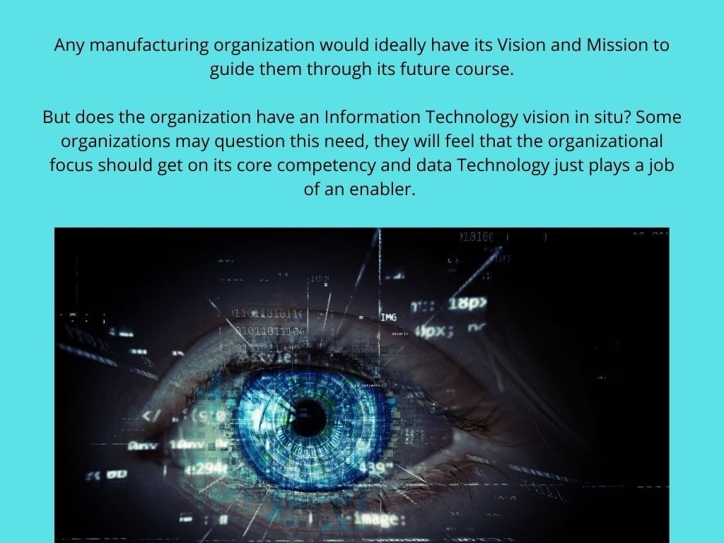 Any manufacturing organization would ideally have its Vision and Mission to guide them through its future course. But does the organization have an Information Technology vision in situ? Some organizations may question this need, they will feel that the organizational focus should get on its core competency and data Technology just plays a job of an enabler. But on the contrary, According to Sonia Randhawa, such organizations are in greater need of an Information Technology vision. The role of knowledge Technology is that of a business driver in today's competitive environment and not just an enabler.https://ext-5936643.livejournal.com/433.html