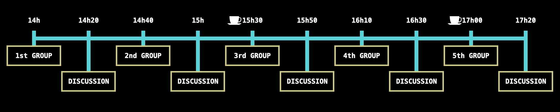 After each presentation, each group will be given a 20 min time window where we will all discuss the work done over the previous days.