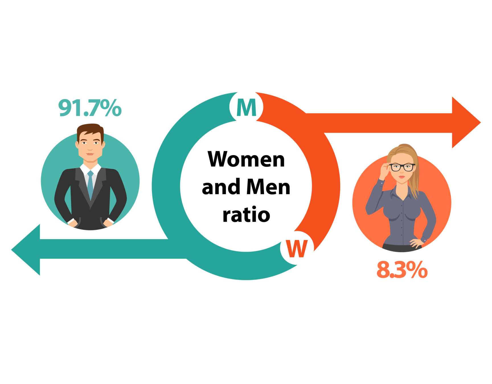 While those working in feature film industry are all males, only one of the people working in video game is female.