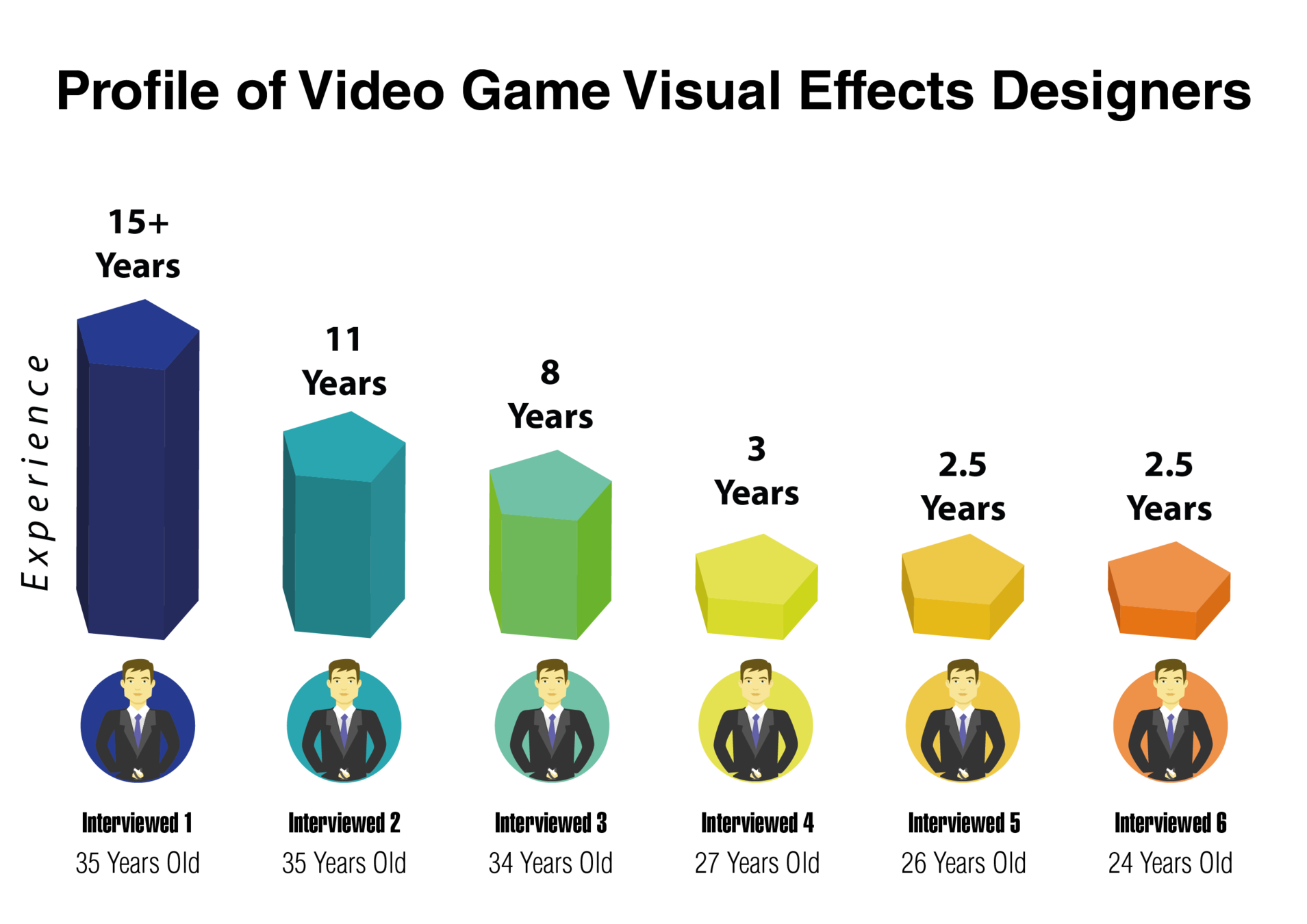 Who work in feature film industry have an experience of 10 to 20 years and those who work in video game have an experience of 2.5 to 15 years.