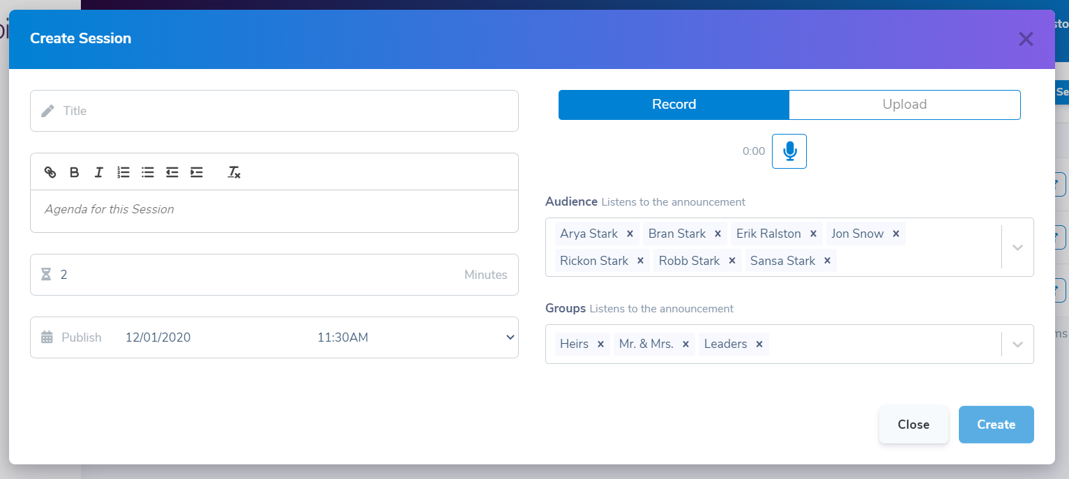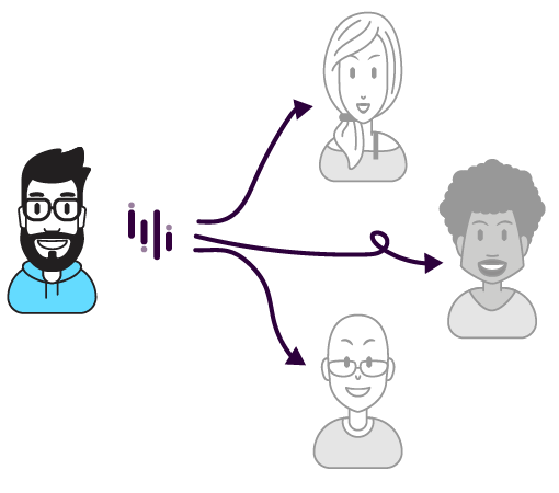 We let you easily create and distribute podcast style communications to the platforms you own today.