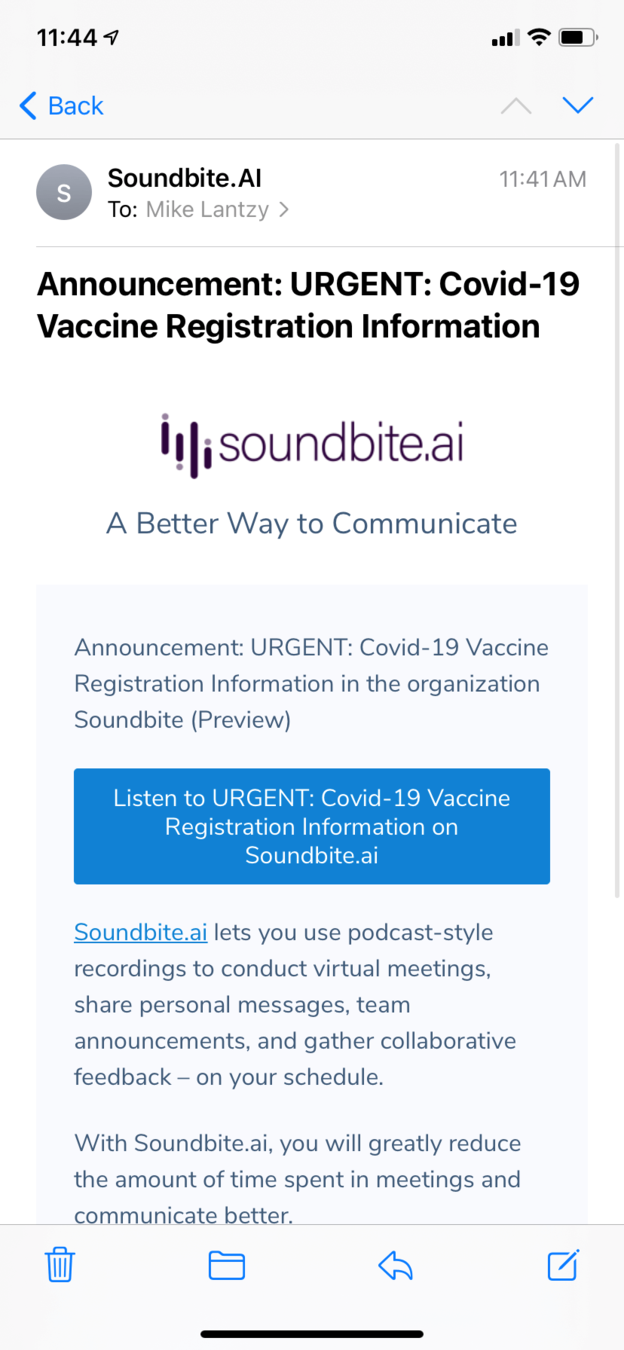 Visit calendly.com/soundbite to schedule a discovery meeting with key stakeholders to discuss value creation.