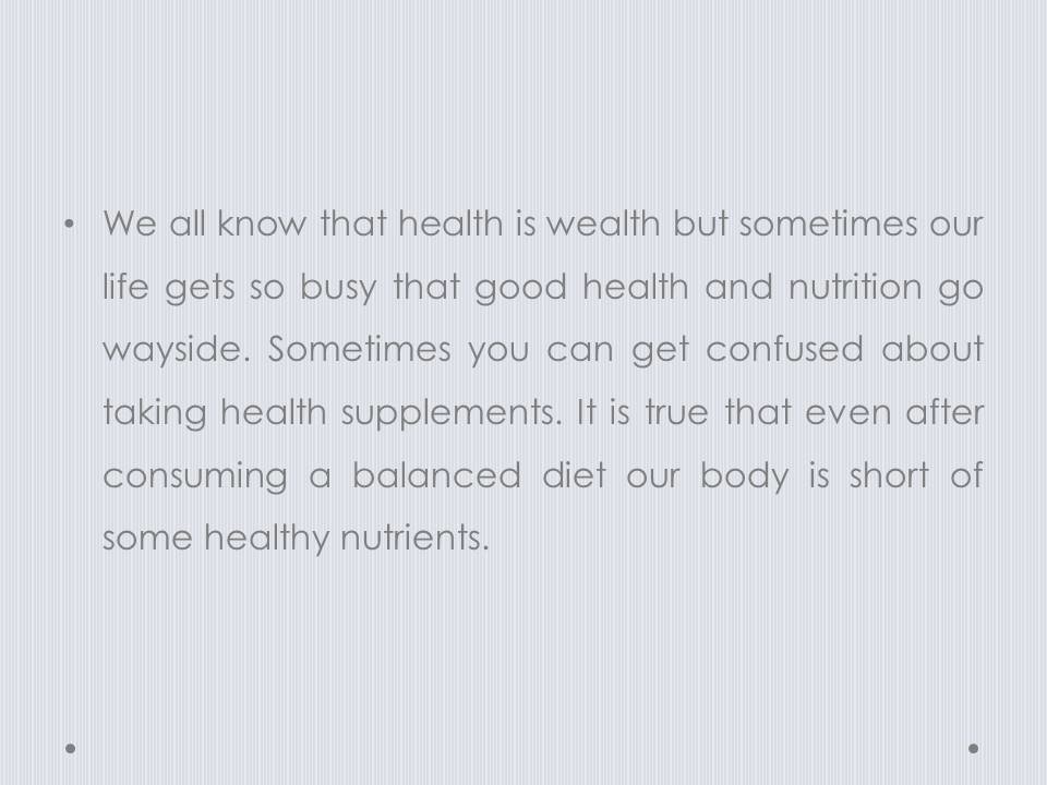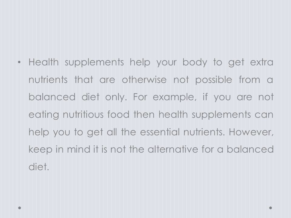 Health supplement help your body to get extra nutrients which is otherwise not possible from balanced diet only.