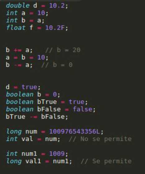 | Aritmético | +, -, *, /, %, ++, -- | Sumar, restar, multiplicar, dividir y módulo de primitivas |