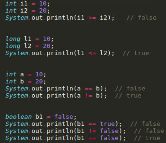 - Se usan para determinar si el valor de una primitiva es igual, menor o mayor al valor de otra.